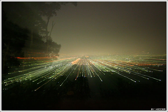 夜景老是拍不好.索興把放在桌子上的相機拿來玩變焦效果.