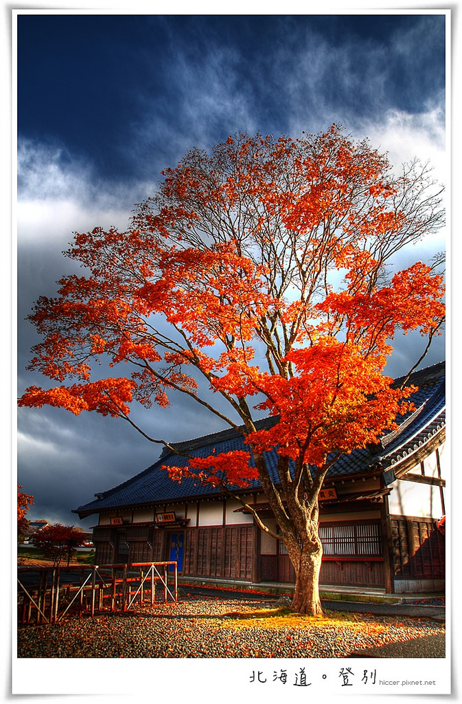 攝於:北海道.登別 伊達時代村旁不管下雨下雪總掩不了秋天的紅,或許只有在寒冷的北國,才能讓它如此堅冷不拔。記得幾年前老家也有兩顆諾大的楓樹,總是無法換上如此鮮紅的外衣即乾枯掉落; 或許人也是要在困境中才能展現出不凡的光芒吧........