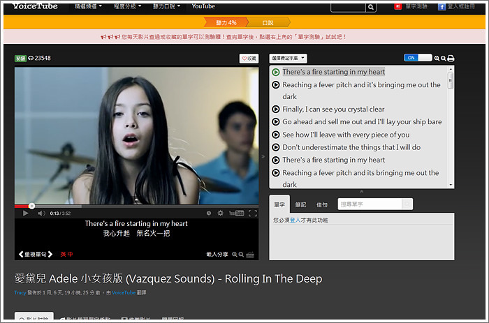 並且加入了英文字幕,方便使用者查單字和了解影片內容。甚至有的影片有中英對照翻譯。